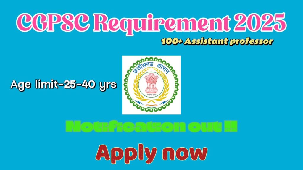CGPSC Assistant Professor भर्ती 2025 जो उम्मीदवार CGPSC Assistant Professor भारती 2025 में रुचि रखते हैं, कृपया CGPSC सहायक प्रोफेसर जॉब्स 2025 से संबंधित पूर्ण अधिसूचना पढ़ें। प्राधिकरण ने125 पदों के लिए छत्तीसगढ़ सहायक प्रोफेसर (चिकित्सा शिक्षा) नई रिक्ति 2025 की भर्ती के लिए नई अधिसूचना जारी की है , पंजीकरण फॉर्म 2025 25 नवंबर 2025 से 24 दिसंबर 2025 तक शुरू हो गया है ।